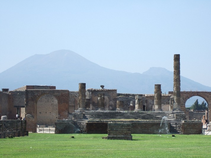 | 塩野七生の「ローマ人の物語」を読んで以来、一度ポンペイの街を訪問したいと思っておりました。西暦79年8月24日にヴェスヴィオ火山が大噴火により麓のポンペイの街を5メートルの火山灰や泥流で埋没させました。その後、18世紀から発掘が開始され、世界遺産にも登録され、その一部が公開されております。 写真左はポンペイの街の中心に位置する公共広場に建設されたアポロ神殿の基礎と柱部分が見られます。奥に見えるのがヴェスヴィオ火山です。およそ2000前にタイムトリップしたような状況です。人々も豊かな暮らしをしていたようで、写真中央が24時間自由に使える水道です。どの家からも2分以内に水道まで行けたそうで、お金を支払えば自分の家まで水道管を引くことも出来たそうです。また、写真右は車道に設置された横断歩道で、車道と歩道には段差がついており、丸い石の間を馬車の車輪が通るようになっております。その他にも劇場や闘技場、公衆浴場などの施設もあり、ここに来て改めて現在の生活の豊かさを考えると共に、シビルエンジニアとしてこれから取り組まなければならないことを考えさせられます。それにしても、恐るべき古代ローマ人。 |