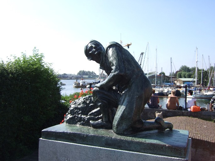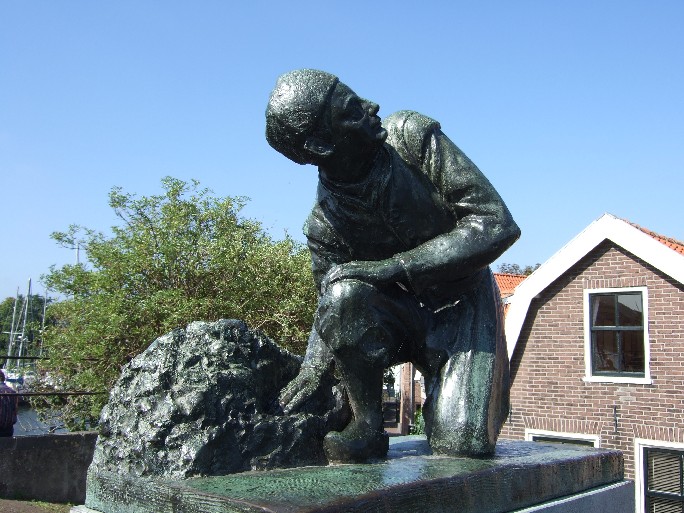 | これが有名なハンス少年の銅像です。探すこと15分、左写真の通り近所の方が日光浴のために止めてある自転車の奥に見つけました。スパールンダムというアムステルダムに近い小さな町でありました。近づいてみると写真中央の通り堤防の水漏れの箇所に指でふさぎ、誰か来ないか見ているようであります。逆側から見るとハンス少年も木靴を履いている事がわかります。 いろいろ調べてみると、このハンス少年の銅像は別のところにもう一つあるようです。(これから調査をいたします)また、残念ながらこの「ハンス少年の物語」はどうもフィクションのようであります。 運河に囲まれたオランダならではの話題ですが、シビルエンジニアとして市民の生活を守るという共通点があるようにも強く感じます。皆さんはどの様な感想を持たれましたでしょうか? |
