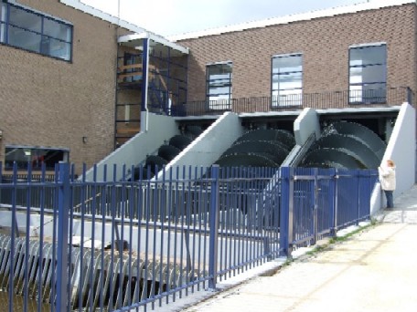| 19基の風車が一帯に並んでいる姿はとても美しいものがあります。このあたりの地表面は水面よりも低く、水を汲み上げる手段として風車が運河沿いに建設されました。1950年までは実際に水を汲み上げておりましたが、現在ではモーター式の装置(写真中央)でおこなっております。風車の内部も公開されており、風車の仕組みや内部での生活の様子を見ることができます。また、私が視察に行った際にちょうどオランダのプリンス(Johan Friso)も視察に訪れておりました。 | ||