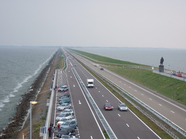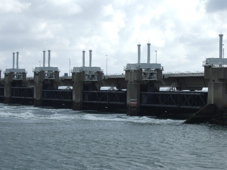 | 国土の半分以上が海面下にあるオランダはこれまでに何度となく高潮による被害を受けてきました。高潮への対策として、1957年からデルタプランを立案し、実施してきております。 写真左から大堤防(1932年完成)、東スヘルデ洪水バリア(1986年完成)、マエスラント洪水バリア(1997年完成)を視察して参りました。詳しくは、「シビル・エンジニア向け」のページに載せてありますので併せてご覧下さい。 いずれもオランダになくてはならない重要な構造物であり、オランダの象徴となっております。 |
