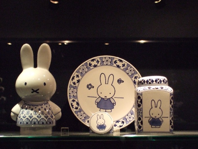 | デルフトといえば何を思い浮かべますでしょうか? 一つはデルフト焼き、もう一つはフェルメールの「デルフトの眺望」・・・・。というところでしょうか。先日、遅ればせながらデルフト焼きの窯元に行って参りました。やはりありました。写真左のデルフト焼きの「デルフトの眺望」。デルフト焼きはハンドペインティングで写真中央のように細かい作業を手作業で実演しておりました。高価な理由がわかりました。(お土産としては高価すぎますので悪しからず。) 最近では写真右のミッフィー(オランダではナインチェと呼ばれています)も人気があるようです。ミッフィーはオランダ人のディック・ブルーナさんの絵本の人気キャラクターで全世界で8500万部以上が売れているそうです。オランダ中央部のユトレヒトにミュージアムがあります。 |