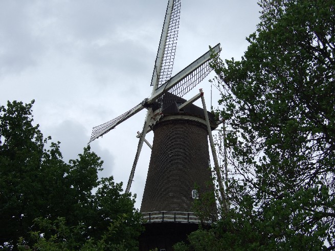 | ライデンにある風車博物館を見学に行きました。キンデルダイクのところでも説明しましたが、オランダには風車はなくてはならない構造物であります。この風車は、水を汲む目的ではなく、1743年に建設された粉引き用に使われていたものを博物館にしたものです。内部には風車の歴史や仕組みなどがわかりやすく説明されており、実際に見ることもできますので楽しみながら学ぶことができます。最盛期では9000基もの風車が活躍していたそうですが、現在では1000基ほどが残されているそうです。そして、現在では環境ほどの目的からクリーンエネルギー源となる風力発電用の風車が建設されております。それにしてもオランダは風が強いです。 |