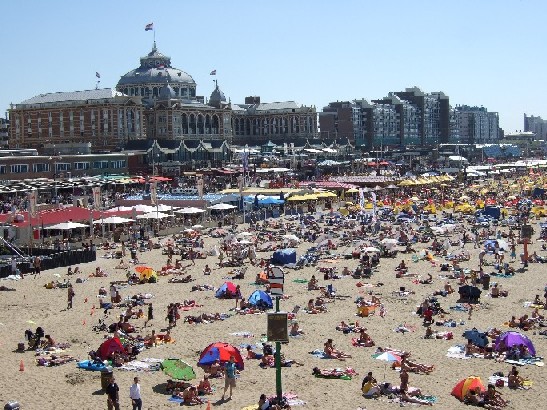 | オランダの名所の一つにスヘフェニンヘンというビーチがあります。ヨーロッパで最も賑わっているビーチの一つで私の住んでいるデルフトからはトラムに乗って30分ほどです。こちらの人の発音を聞くと、どうも「スケベニンゲン」というように聞こえてきます。まるで○○さんのようですね??! 8月上旬に行ったときは、写真のようにとても賑わっておりました。日光浴や海水浴はもちろんですが、写真右のように海岸ではバンジージャンプのできる塔が建っており、1回55ユーロで楽しむことができます。ただ、残念なことにオランダの夏は既に終わってしまったようです。日本では残暑厳しい8月後半だと思いますが、こちらはもう秋に入っているようでとても涼しくよい気候です。 |