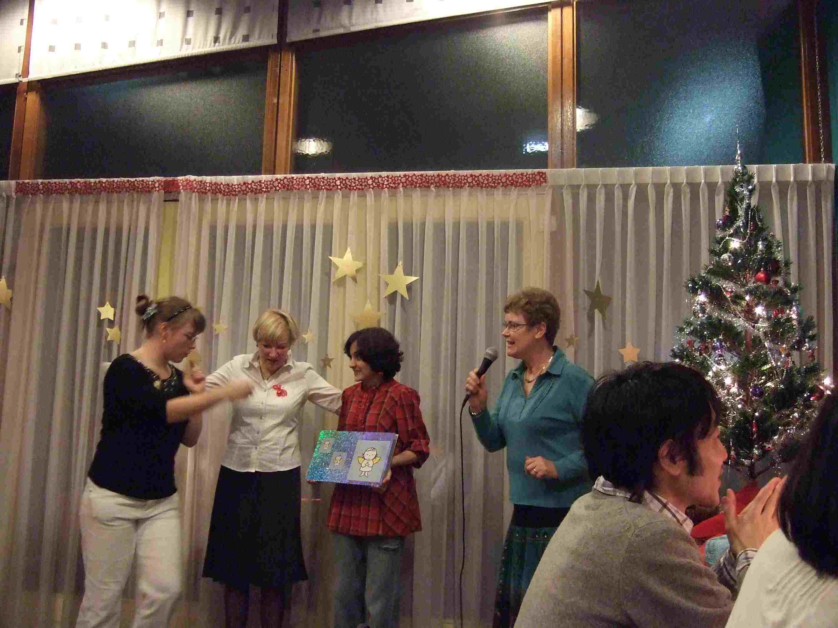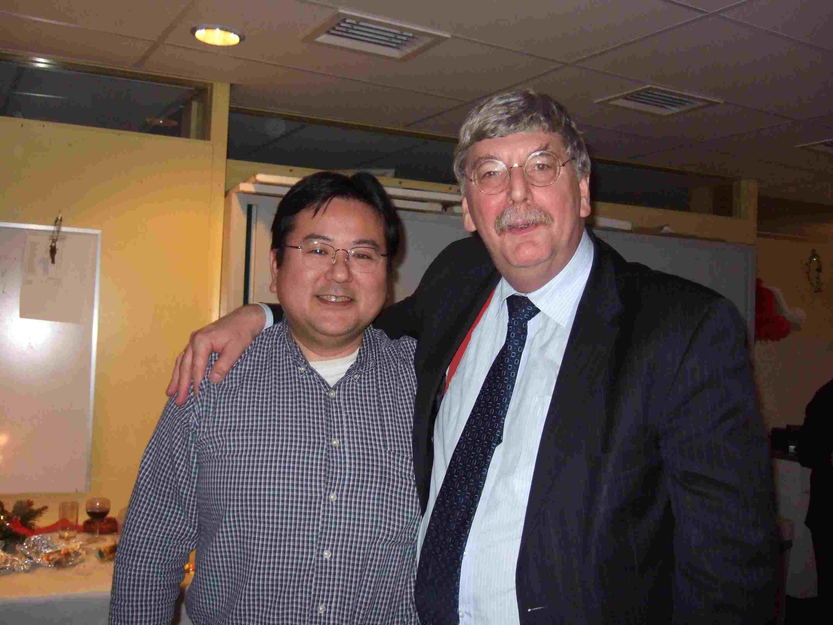 | ING(International Neighbour Group)という組織がデルフト工科大学を中心とした教育・研究機関へのビジターの家族向けにあります。私はデルフト工科大学ではないのですが、快く加入させていただきました。アクティビティーとしては、オランダ語講座・英語講座・クラブ活動などが活発におこなわれております。私もオランダ語講座に週1回参加しております(レッスンの模様は次の機会にゆずります)。 ING主催のクリスマスパーティーが開催され、家内と共に参加いたしました。歌あり、踊りあり、紙芝居ありでとても楽しいオランダのクリスマスパーティを味わうことが出来ました。ホスト・ホステスの皆様ありがとうございました。写真右はデルフト工科大学の学長であるFokkema先生も来られていましたので、一緒に写真を撮らせていただきました。 |