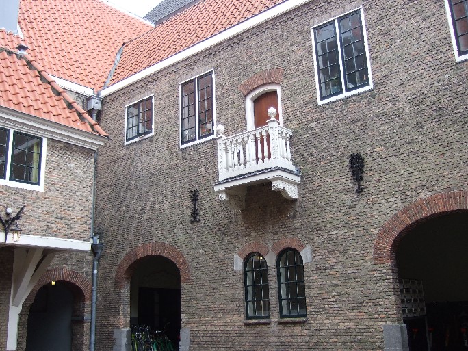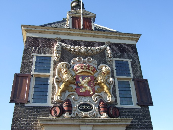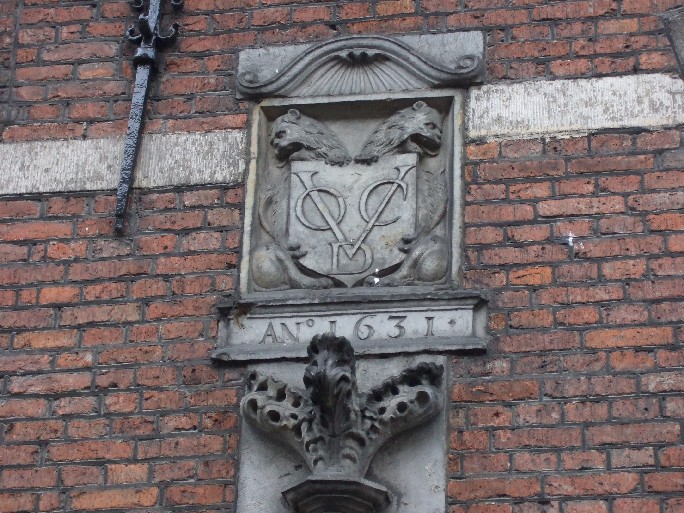 Oost-indische Company:英語でUnited East-india Company:日本語で連合東インド会社)のマークがあり、デルフトのDも組み込まれています。1631年に作られたこの建物は、現在は改築してアパートとして使用しているそうです。歴史を感じます。 |