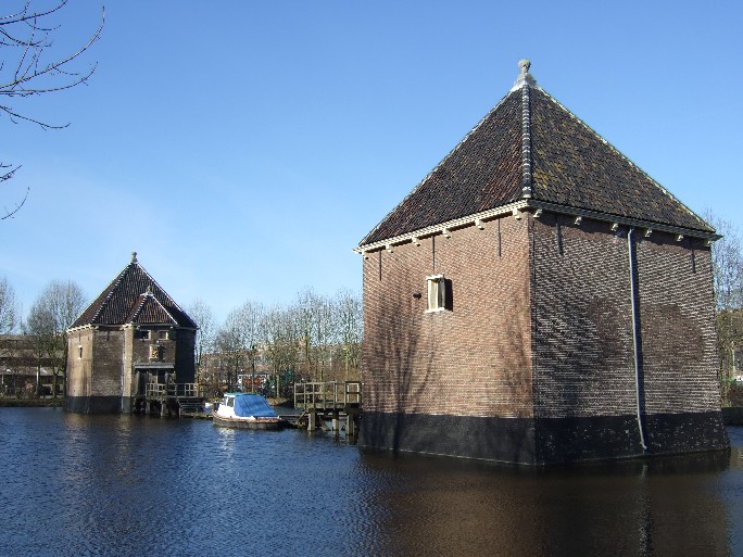 | デルフトの市街から1キロほど離れた場所に、1661年に完成した火薬庫があります。この火薬庫はスキー川に面しており、写真左の通り入り口の門は立派に装飾されております。また、火薬庫は池の中に2つ現存しております。実はさかのぼること7年前の1654年に市街地の北側にあった火薬庫が大爆発を起こしたそうです。40トンの火薬が爆発し100名以上が亡くなり、1000名以上が負傷したそうです。こちらで当時の様子がご覧頂けます。その後市街地は復旧し、火薬庫が郊外に移設されたようであります。 この場所は現在は、スカウトのキャンプ施設に使われており、写真右のように室内にはベッドが備え付けられており、子供用の宿泊施設として使用されております。 この頃に描かれた「デルフトの眺望」(フェルメール・1660年頃)はデルフトの南側から描いたものであり、ほとんど被害がなかったようです。歴史の事実を知ると一層興味がわいてきます。 |